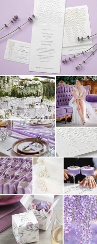 Our Hanging Wisteria wedding invitations set the tone for a celebration that’s soft, romantic, and undeniably elegant. With its raised white floral embossing and cascading